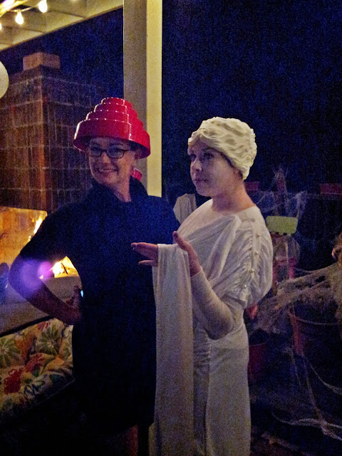the decorations and food, including a fair amount of jello formed in Halloween-themed molds. And as if that's not enough, she, John and their daughter always dress up in a creative and well-executed family