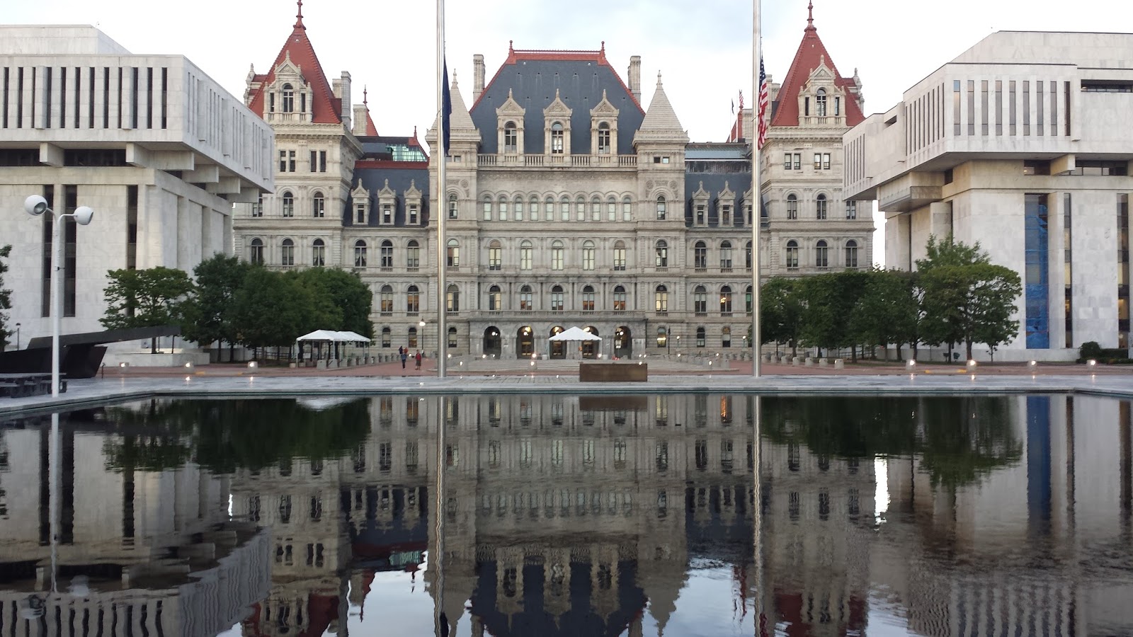 New York State Capitol Building (side-view), overlooking Empire State Plaza |