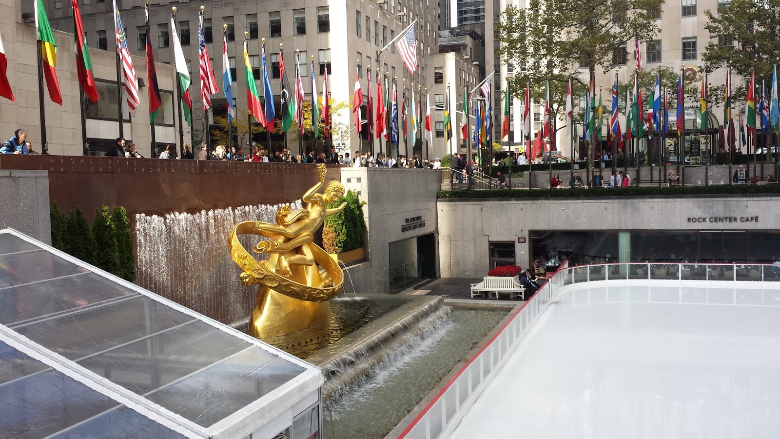 After leaving the library, we continued up 5th Avenue, going just far enough to admire (and for Jerry to photograph) the impressive St. Patrick's Cathedral before turning west towards Rockefeller Center. The fountains as we approached Rockefeller Center were decorated with colorful autumn gourds and flowers for the season.